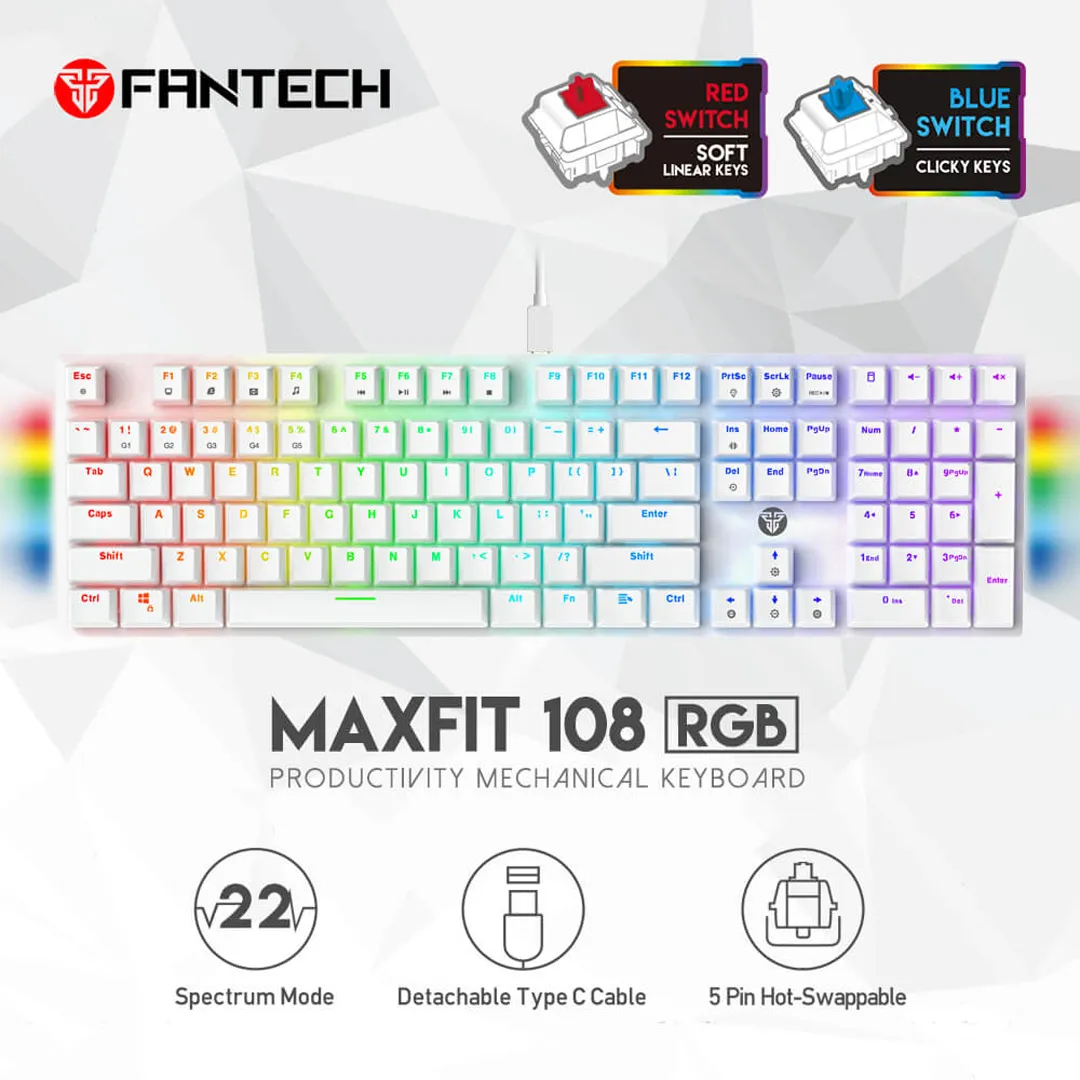 كيبورد ميكانيكي Fantech MaxFit108 MK855 احترافي بنظام Full-Size.