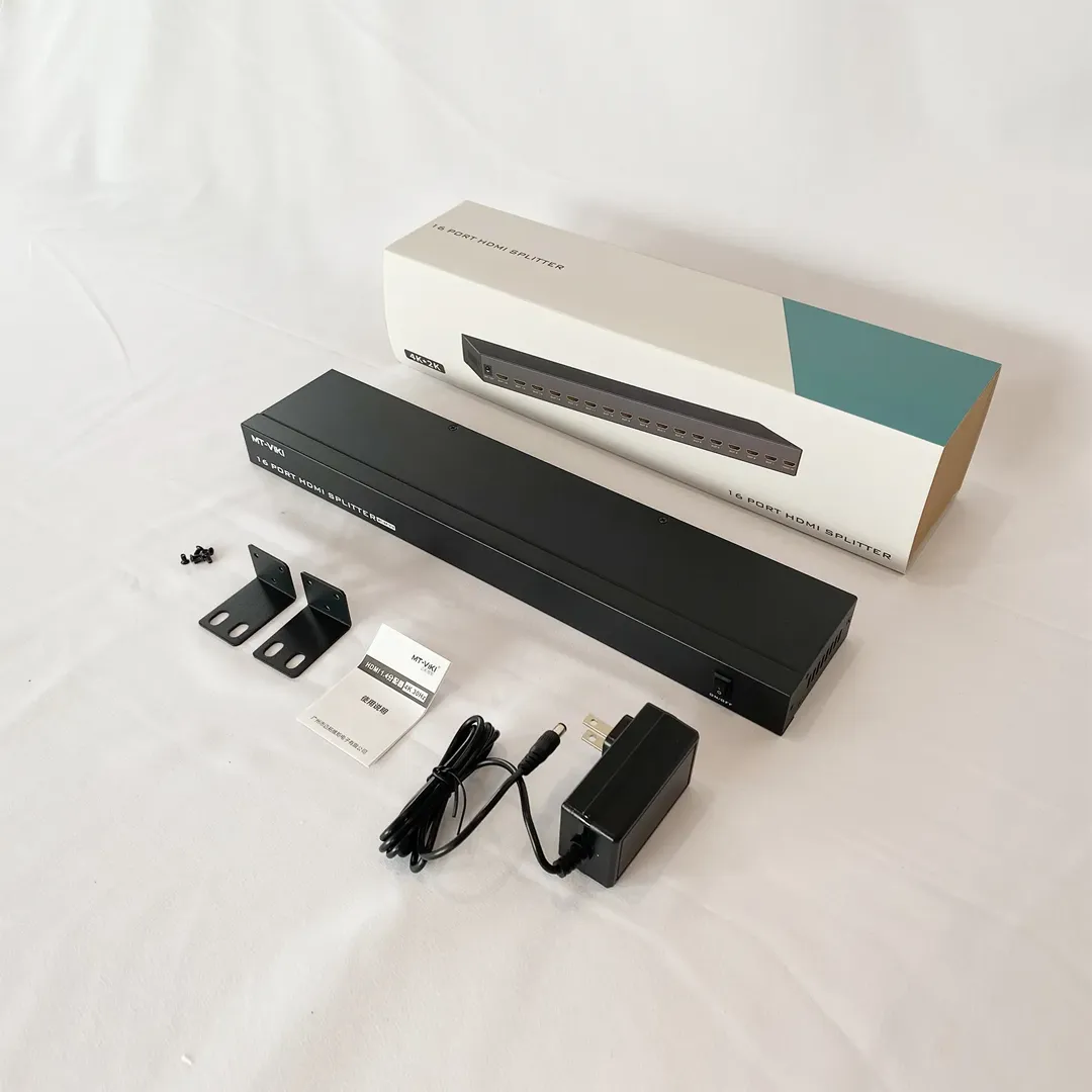 - تغطية شاملة: توزيع إشارة HDMI واحدة إلى 16 مخرجاً متزامناً، مثالي للوحات الإعلانية الرقمية وأنظمة المراقبة.