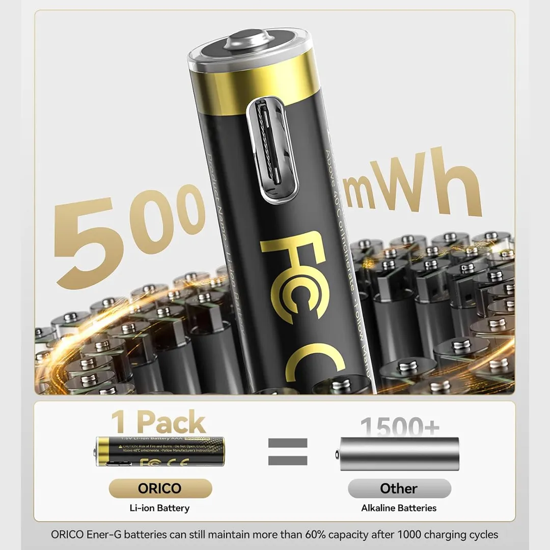 انتقل إلى الجيل الجديد من الطاقة مع بطاريات ORICO الليتيوم الذكية. هل سئمت من ضعف أداء أجهزتك بسبب البطاريات التقليدية؟ توفر لك هذه البطاريات جهداً ثابتاً ومستقراً بقوة 1.5 فولت من بداية الشحن وحتى نهايته، مما يضمن عمل أجهزتك (مثل أجهزة التحكم، الماوس اللاسلكي، والألعاب) بأقصى كفاءة وكأن البطارية جديدة دائماً. بفضل سعة 500mWh وإمكانية إعادة شحنها لمئات المرات، ستوفر الكثير من المال وتحمي البيئة في آن واحد. إنها الحل الأمثل للأجهزة الحساسة التي تتطلب طاقة مستقرة ودقيقة.