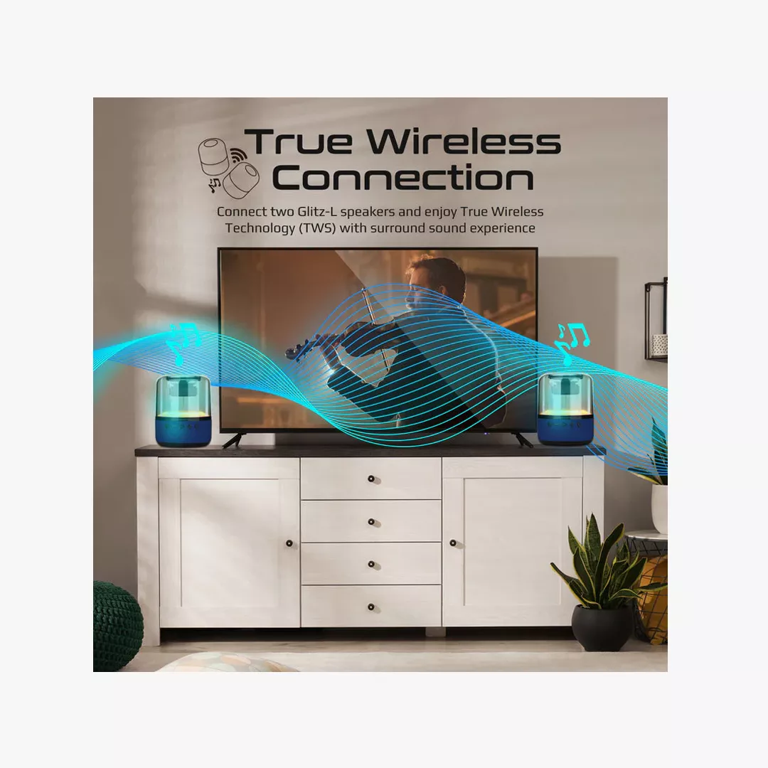 سبيكر بروميت Glitz-L المضيء | صوت جبار وعرض ضوئي 360 درجة.