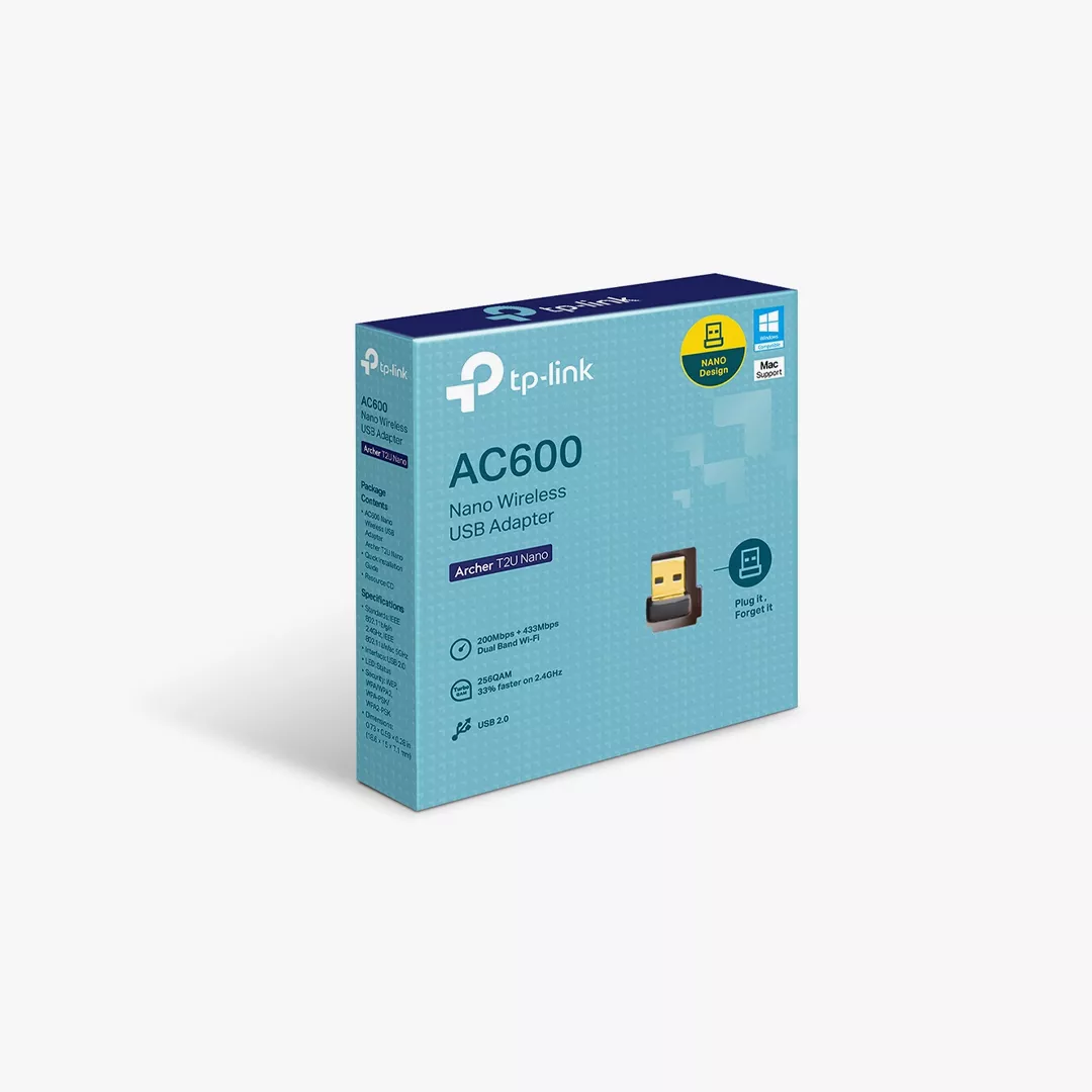 TP-Link Archer T2U Nano – محول واي فاي AC600 صغير الحجم ثنائي النطاق.