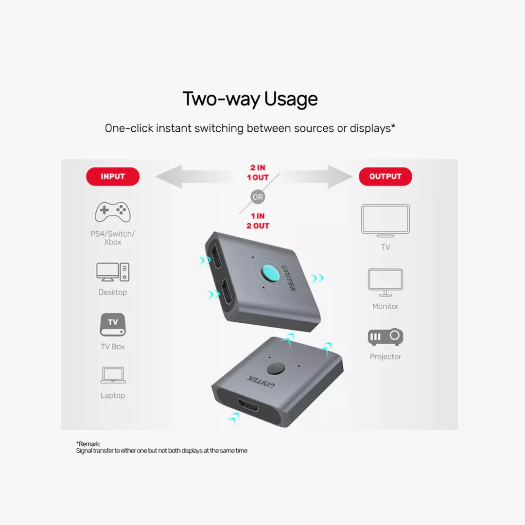 موزع ومبدل HDMI من Unitek موديل V1127A – ثنائي الاتجاه بدقة 4K